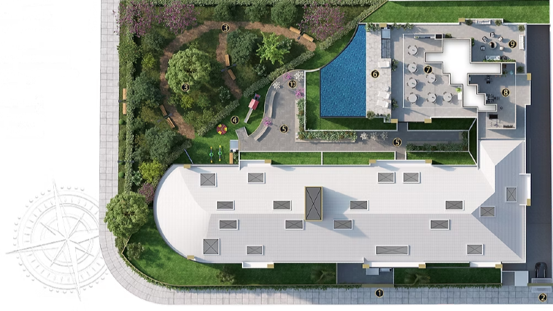 - Infraestrutura moderna, incluindo tomadas USB, aquecimento solar da piscina, reaproveitamento da água da chuva, circuito de monitoramento, automação e bike-sharing